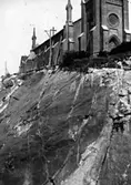 Stora Mellby sn. Utsikt mot kyrkan från väster.