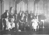 "Middag 17 april 1919". Vid detta tillfälle eklaterades förlovning mellan Margareta Sparre och Folke Sederholm, som syns tillsammans längst till höger. I mitten ses Hilda Sparre. Fotograferat från stora salongen på Gunnebo slott.