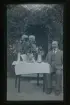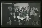 "Målsjö." Grupporträtt av släkt och vänner vid ett födelsedagsfirande.