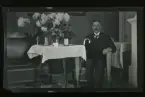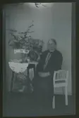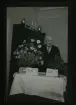 "Eriksson, Svalnäs" Porträtt av en man som sitter vid ett bord med gratulations-blommor.