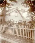 Kv. Hjorten, S:t Olofsgatan 58 - Botvidsgatan 70, 1898. Unikt. Här byggdes senare fröknarna Jonssons fastighet, vid anordnande av Botvidsgatans mynning. Gåva av Stationkarl V. Fagergren, Falköping. Omkring 1898. Från vänster: 1. Alb. Nylén, Maskinist 2. K.J. Fagergren, Fastighetsägare 3. Hillberg, hos Nordins 4. Fröken Pettersson 5. Hulda Fagergren 6. Fru Anna-Lisa Fagergren