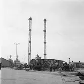 Knut Johansson monterar tafter. Lamellplast, våren/sommaren 1960.