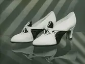 "Sommarskor". Pumps med kort snörning, klack, ljust och mörkt skinn.