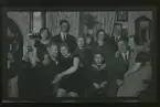 Ett sällskap sitter runt ett matbord. Längst till höger Axel Fredriksson, intill honom Frida Fredriksson.
