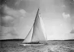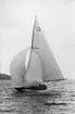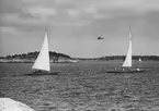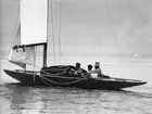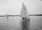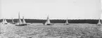 "Boja II leder med långt försprång vid Bullerö. Dist.segl. Saltsjöbaden-Sandhamn. Juni 12 1920." "b. 1918 i Gröndal K.E. Sjögren"