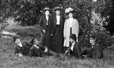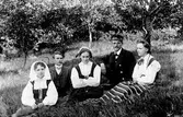 UNGDOMAR SITTANDE I EN SKOGSBACKE.