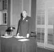 Stadsfullmäktigeledamöter i Skara 1951-54. Från vänster: Gustaf Holmstedt, Gunnar Holmstrand, Evald Händén, Åke Johansson, Erik Järnåker, Axel Karlsson, Valfrid Lengdén, Lennart Lindén.