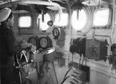 FC Örlkn Bengt Pauli i styrhytten på Minfartyget Älvsborg under uppvisning av fartyget för Chilenska officerare 1996