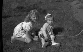 Vägstation O4, Henån. Vägstationens huvudbyggnad med kontorsdel närmast och garage. På garageplan en stenkross. I förgrunden en vägsladd. Bensinpump (drivmedelspump).