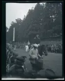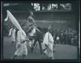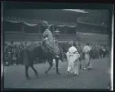 Hjelmqvist står framför gården med sina hästar, Björkhult.
