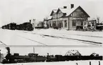 Skara station från Järnvägsgatan omkring 1920-talet. Vykort.