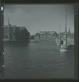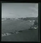 Vy över isigt Årstaviken och Södermalm, Stockholm.