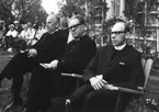 Republiken Käckåsens statskapell spelar, fr höger Erik Frykman, Olle Pallin, "Olle på Halla" Jonsson (skymd), Joel Hedåsen