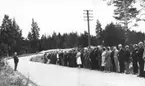 Lektor Sigurd Bograng, Eskilstuna, hyllar Nitahå-Jussi med tal på finska på dennes 85-årsdag. Jussi är dagen till ära klädd i sin modersförsamling Norra Nys folkdräkt.