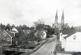 Skara, Alandersgatans västra mynning. Domkyrkan i bakgrunden. Ingenjör Ernst Lefvanders samling, Skara.