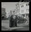 Gatubild. Byggnad med skyltar: Missionsbokhandel. Olympia. Eskilstunaboden.