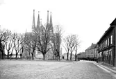 Skara. Domkyrkan från Östra Kungshusgatan, 1950-tal.
