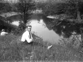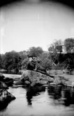 Text som medföljde bilden: "1951. 7. Vid tvättstugan lyck..? vid rättarbostaden. Bron nybyggd omkr. 1920. Ligger norr om den gamla bron som går upp till Herrgården."