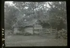 Fotografens anteckning: Dito gård (Karl Anton Holmbergs gård), gamla fähuset m. lada + Karl Anton H.