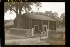 Fotografens anteckning: Dito gård (Karl Anton Holmbergs gård) "sommarfähus" + fru J. H. (Josefina Holmström) Öfver dörren en fartygsspillra med bokst. (S A O/H A N K), bergades för minst 20 år sedan på Holmön.