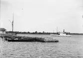 Karlsborg, parti från hamnen, tre ångfartyg.