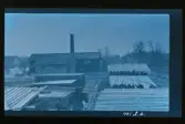 "Axel bär plank vid Fogelstads såg." Axel Fredriksson arbetar.