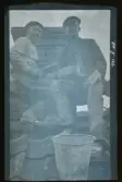 "Far och Ivar lägger stengrund till tvättstuga, Fogelstad."