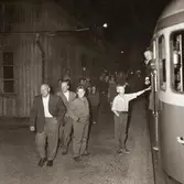 Tre skarabor i väntan på tåg, från vänster Åke Fahlström, Erik "Dillinger" Magnusson, Gösta Holmström. Början på 1940-talet.