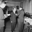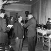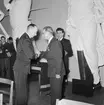 Drottningen kommer upp genom ubåtsluckan på Hvalen under besök i Borgholm 1911. Sjöbefäl ger en hjälpande hand.