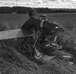 Löjtnant Dahlbeck flyger på Ljungbyhed, hösten 1911 med planet "Nyrop" Blériot nr 3 (Neumüller'ska gåvoplanet) och en kvinnlig passagerare. 50 hkr Gnôme-motor.