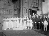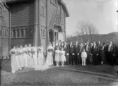 Sommargäster hälsar på hos fam. Persson, 1930-talet. Från vänster: Greta Larsson, Augusta Persson, Albert Persson, Harry "Bölja" och Sonja Svensson.