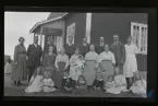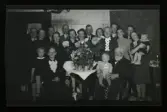 "4 generationer, Målsjö." Grupporträtt av familj vid ett födelsedagsfirande.