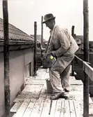 Byggnad N:o 6, tillbyggnad 1954. Betongstation. En okänd man.