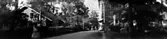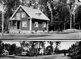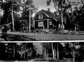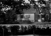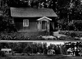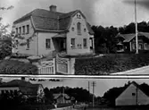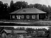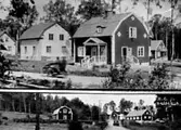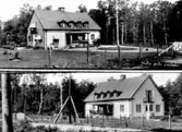 TVÅ HUS MED UTSIKT ÖVER EN DAMM.