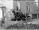 Enligt noteringar: "Två okända män i hästkärra, utanför Färdigs första ateljé på Kvistrum." (BJ)