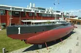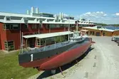 Ubåten Hajen på väg in under bro, troligen Jordfallsbron.