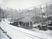 "1935.31. Bro o. vägen sönder vid C.G. Johansson Hedeholm." "På Bruksvägen CG-bron. Munkedalsälven." "Till vänster handelsboden Hagafors. Till höger Hedeholm där bl.a. skomakare Stenhård har bott."