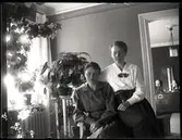 "Husmodersskolan". Två kvinnor i ett rum med mycket krukväxter. Ett rum med spegelbyrå, lampor m.m.