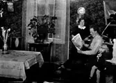 Mannen som läser tidningen är Herman Eriksson, född 1898, Lenninge 5:11.