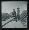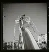 1708 G Mölnlycke väverier, Mölnlycke. En flicka i trappan upp till en rutchkana på en lekplats.
