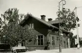 Station med Gustav Vasa-stenen . Stationen togs i bruk1885 . Stationen ligger 29 Km från Stockholm och 27 Km från Rimbo .