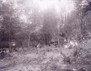Genom fotografens anteckningar får vi veta att vi betraktar eftertruppen av sjukvårdssoldater vid mobiliseringsövning år 1900. Vidare förmedlas att gruppen i stunden nått Naterstad i Slaka socken på sin väg mot Malmens övningsfält.