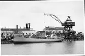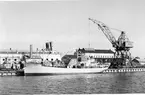 Frimärke ur Gösta Bodmans filatelistiska motivsamling, påbörjad 1950. Frimärke från Norge, 1947. Motiv av Det nya rådhuset i Oslo Minne av kong Haakons hemkomst 7.6.1945 Norges postväsen 300 år 1647-1947.