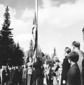 Allan Molin i Vabränna by står framför ett växthus och håller upp tidningen Hemmets Journal, som han säljer för 30 öre.