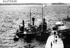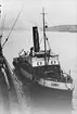 Foto i svartvitt visande lastångfartyget "C.A. BANCK" av Hälsingborg, manöverodugligt. Obs! 2 st. bollar i fören.