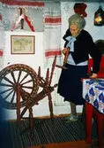 Ateljéporträtt - Lotten Lindgren klädd i folkdräkt spinner, Dalarna 1893