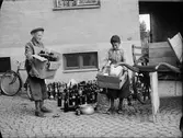 "Mjölkdrickning genom kobbelrör är slagnummer. Uppskattad skolpropaganda under mjölkveckan", Uppsala 1938