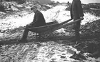 Liten pojke hjälper till med att rensa upp längsvägkanten. Knutby vägstation.