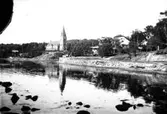 Juli 1924. "Strandpromenaden" Lyckorna, med Ljungs kyrka.