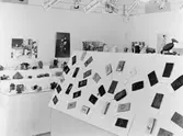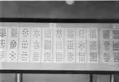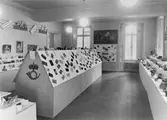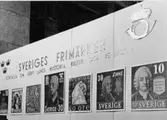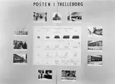 Skärmar och föremål visande postens diligenstrafik i Norrland. Chaufför Bertil Linderoth, Poststyrelsen, vid en postbussmodell.